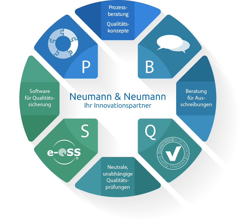 Neutrale Qualitätsprüfungen durch Spezialisten werden mit der von Neumann & Neumann entwickelten und nach DIN EN 13549 registrierten Software e-QSS durchgeführt. Dadurch sind Kontrollen nicht nur effizient, sondern liefern auch zeitnahe Ergebnisse und Auswertungen mit sofortiger Stärken-Schwächenanalyse und Verbesserungsvorschlägen.